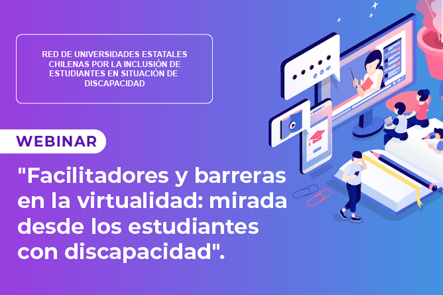 El primer webinar del año 2021, programado por la Red de Universidades Estatales por la Inclusión de Estudiantes en Situación de Discapacidad, tiene fecha para este viernes 16 de abril, desde las 11.00 horas, con el nombre “Facilitadores y Barreras en la Virtualidad: Mirada desde los Estudiantes con Discapacidad" (EcD).